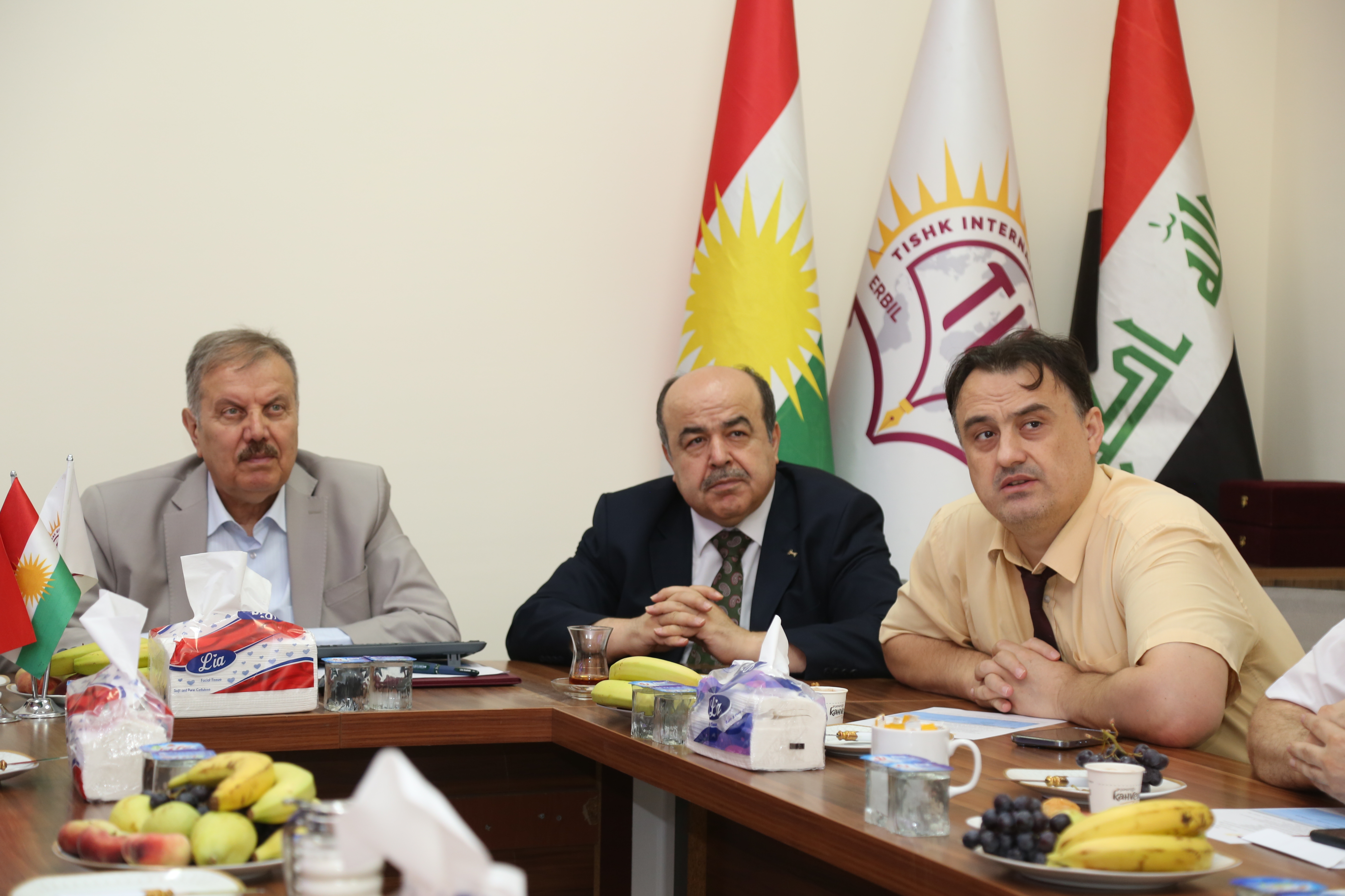 Urmia University of Medical Sciences (UMSU) represented by Dr. Mohammad Amin Valizade Hasanloei, the President of Urmia University of Medical Sciences; Dr. Mahmoodloo, the Vice-Président for Education; Dr. Masoodi, the Vice-Vrésident for Clinical Affairs; Dr. Hosseinpour, the President’s High Counselor; Dr. Niko, the President’s Executive Manager; and Dr. Fereidoni, the Director of International Affairs; along with Mr. Ali Zohrehvand, the Deputy of Consul General of the Islamic Republic of Iran in Erbil visited Tishk International University and welcomed by Asst. Prof. Dr. Idris Hadi Salih, the Chairman of Board of Trustees; Ass. Prof. Dr. Mehmet Ozdemir, the Acting President and the Academic Vice President; Dr. Fatih Cura, Vice President for Administrative and Financial Affairs; Dr. Duran Kala, the Dean of the Faculty of Dentistry; and Dr. Tola Faraj, the Head of Medical Analysis Department and the International Relations Office Representative at the Faculty of Applied Science on July 18th 2023.