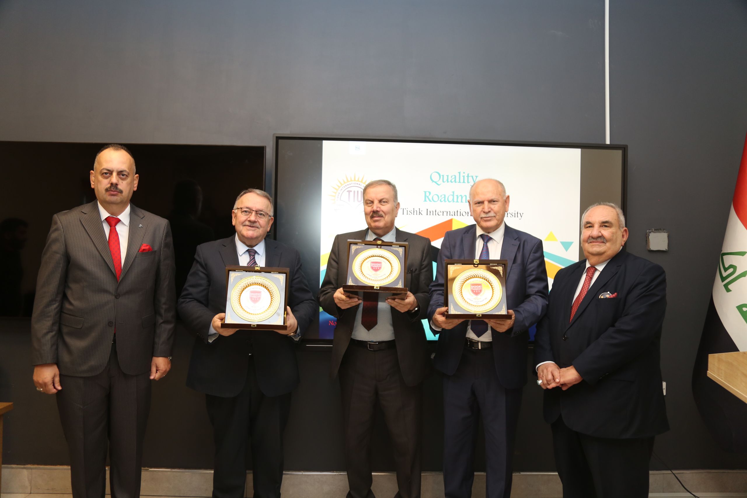 In a ceremony held at Tishk International University (TIU), the Digital Transformation Agency recognized the exceptional contributions of three scientists and academicians in the field of higher education in Iraq and the Kurdistan Region of Iraq (KRI). The awards were bestowed upon Assist. Prof. Dr. Idris Hadi, Head of the Board of Trustees at TIU, Prof. Dr. Sultan AbuOrabi, President of TIU, and Prof. Dr. Ahmad Dizayi, Former President of Salahaddin University-Erbil. Present at the ceremony were members of the Board of Trustees, Deans, and Heads of Departments from TIU.