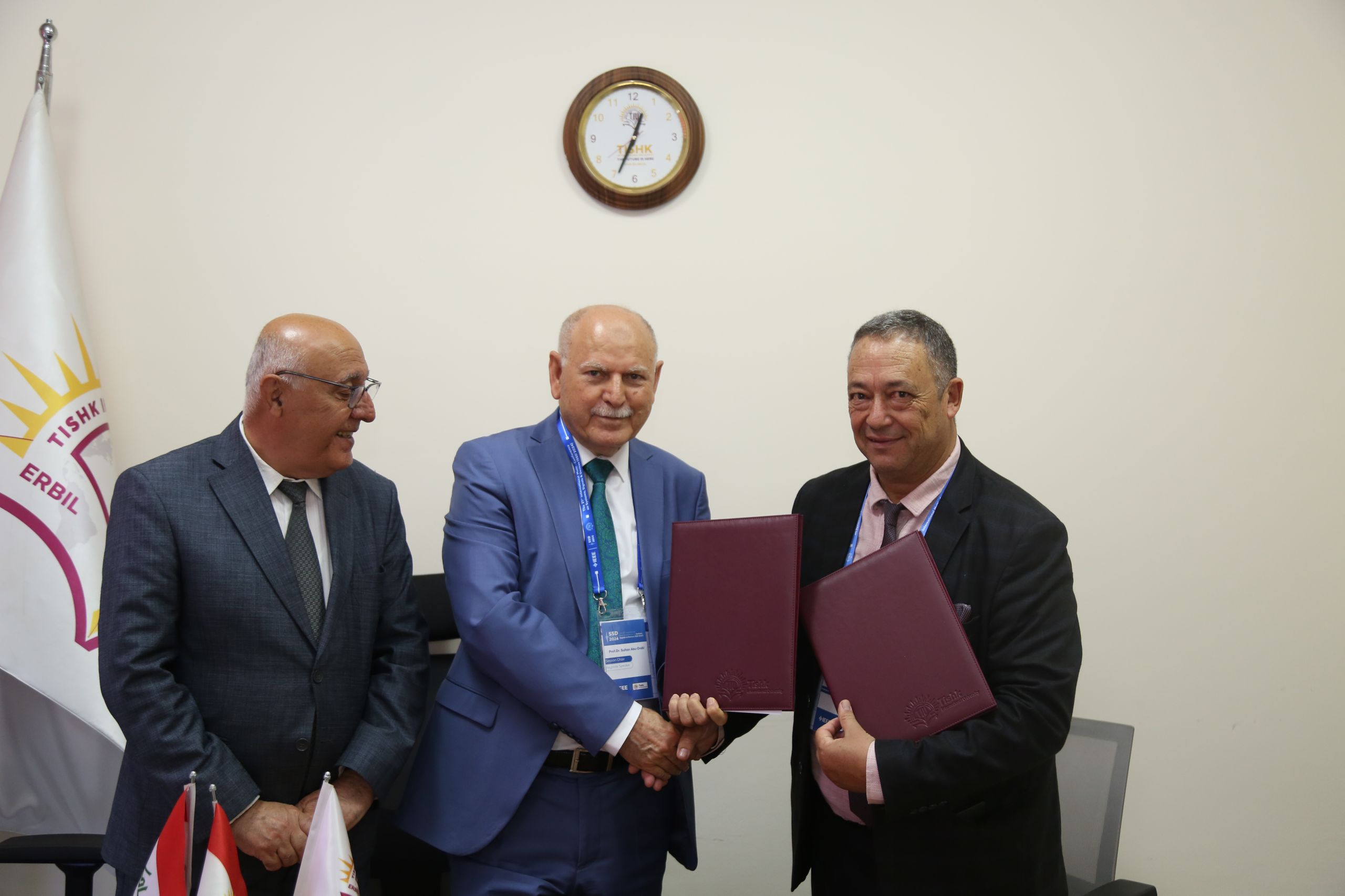 At the 21st International Multi-Conference on Systems, Signals & Devices (SSD’2024), hosted by Tishk International University (TIU) in Erbil, Iraq, an agreement was inked on April 23rd, 2024. TIU represented by Prof. Dr. Sultan T. Abu- Orabi, President of TIU and Assist Prof. Dr. Jaafer Hussein, the Director of International Relations Office and US represented by Prof. Dr. Abdelwahed Mokni, the President of the University of Sfax formalized a Memorandum of Understanding (MoU) signalling a commitment to collaborative endeavours. This pact underscores mutual aspirations to exchange expertise, tackle scientific challenges, and foster academic synergy.