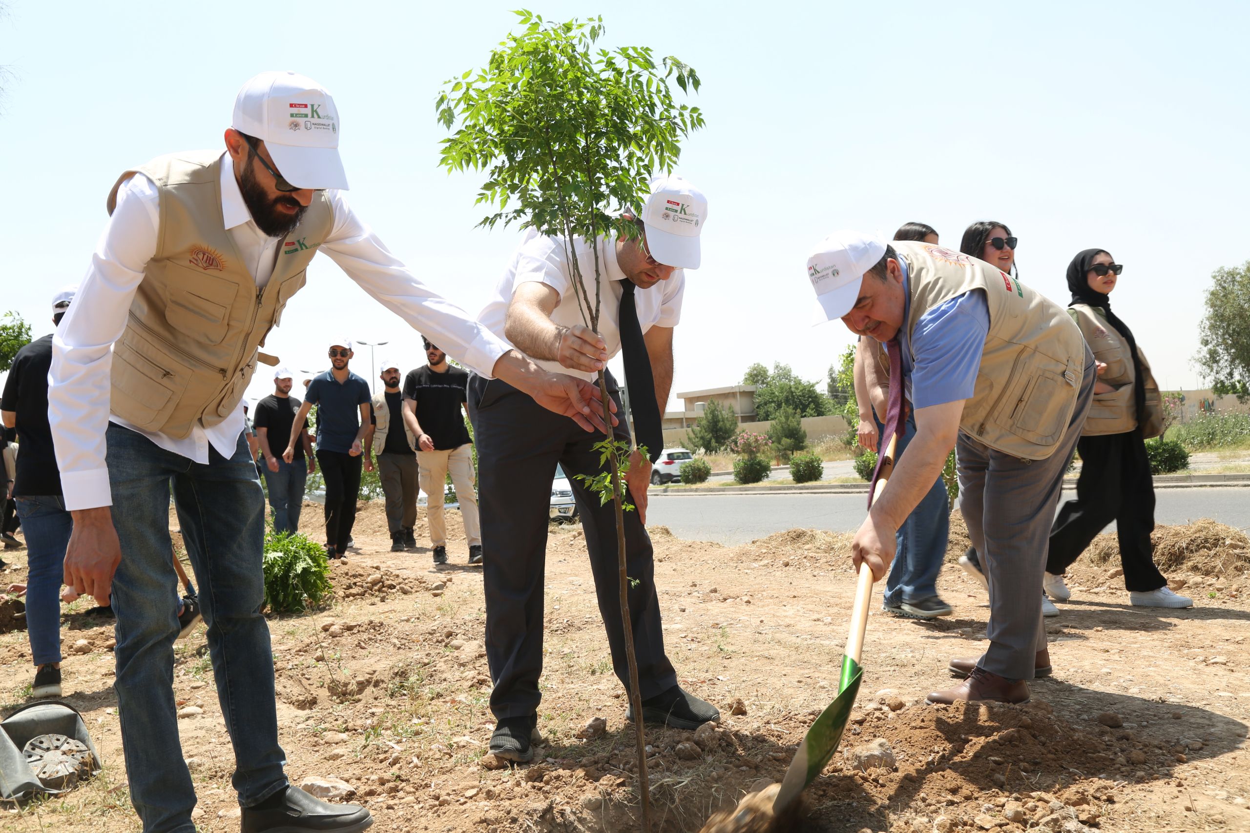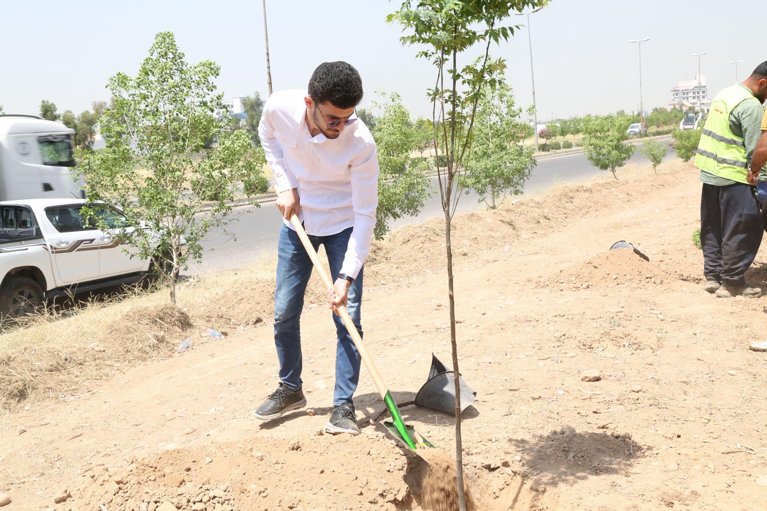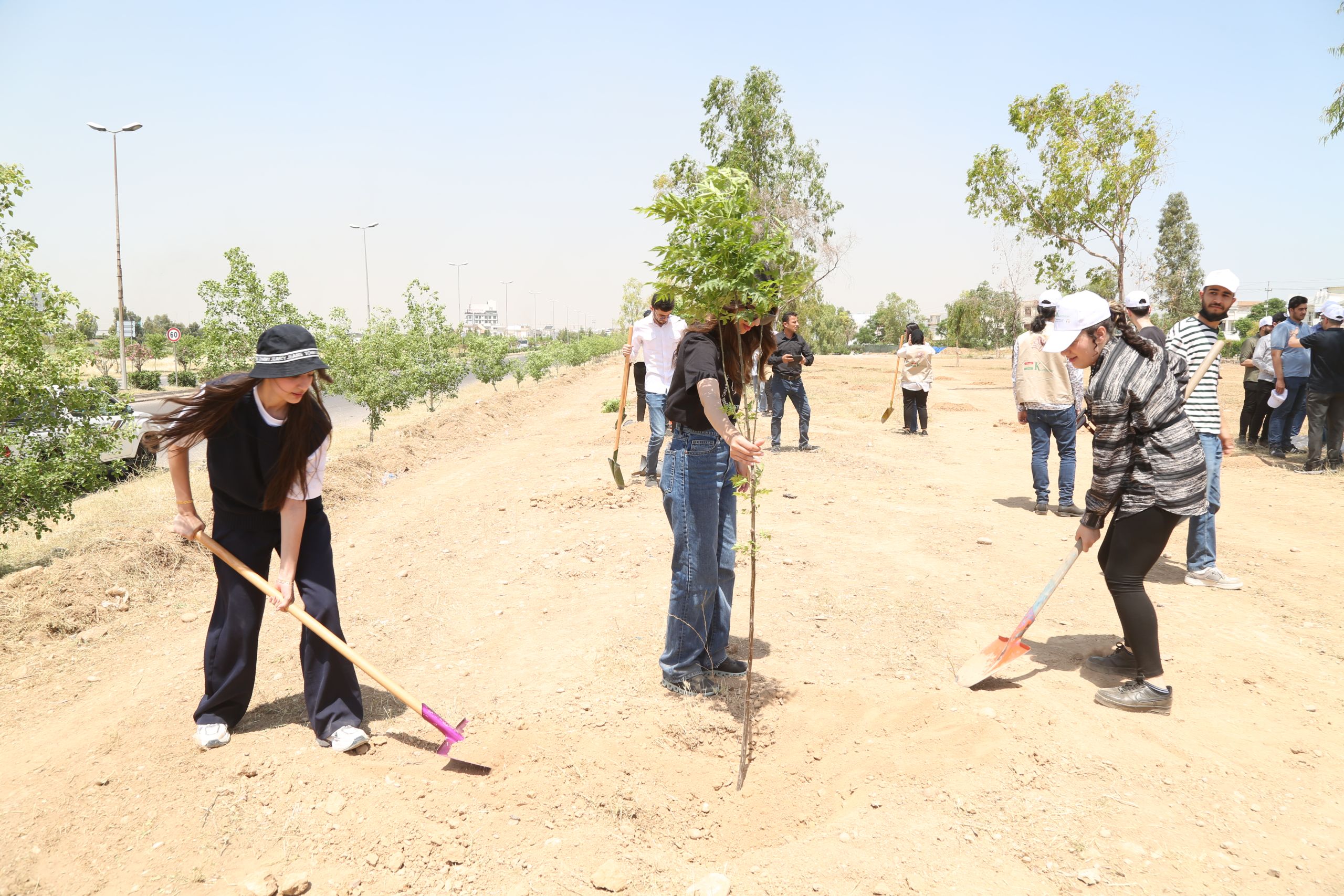 - Tree Planting: The campaign encouraged everyone to join in planting trees to make Kurdistan greener. They emphasized the importance of trees in creating a healthier environment. In Erbil city, over 100 young trees were carefully planted in one of the lush parks. This not only helped to make the city more beautiful but also provided a habitat for birds and other wildlife. Additionally, it brought students together, fostering a sense of teamwork and cooperation among them as they worked towards a common goal of improving their environment. the planting site in one of Erbil city’s parks was carefully selected based on factors such as soil quality, sunlight exposure, and available space, in addition to lack of large green spaces and trees in the selected site. The chosen site offered an ideal environment for the trees to thrive and contribute to the beautification of the park.