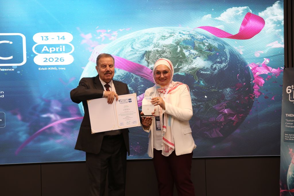 During the sessions, researchers presented a wide range of topics. Dr. Faheem Hayder, Asst. Prof., discussed “CAR-T and CAR-NK cell therapies to target and destroy cancer.” Dr. Ahmad Nawzad Hassan, Lecturer, presented on “Psychological consequences of cancer (stress, depression, and sleep disturbance).” Dr. Hazha Omar Othman, Lecturer, highlighted “Nanomaterials and Artificial Intelligence Techniques in Drug Delivery Systems,” while Dr. Sawsan S. Al-Rawi, spoke on “A Natural Therapeutic Approach as a Potential Intervention in Ovarian Cancer.”