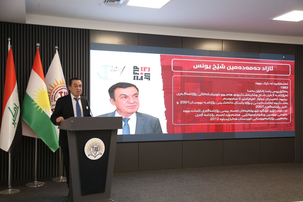 The seminar featured a keynote by Mr. Azad Hamad Amin Sheikh Younis, President of the Kurdistan Journalists Syndicate, who discussed legislative requirements and key challenges facing the media sector, highlighting the need to align laws with international standards.